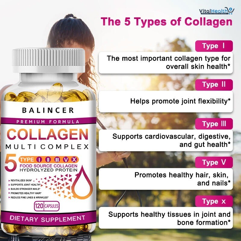 A mixture of hydrolyzed collagen peptides from chicken beef and marine sources can be found in Balincer Collagen Multi Complex Capsules. This mixture guarantees a thorough profile of collagen types including I II III V and X each of which contributes to various facets of health.