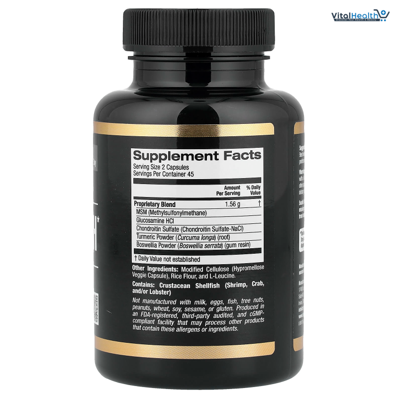 Whether you're working out, walking, or going about your day, this supplement is designed to help support your joint performance and comfort. California Gold Nutrition is committed to high standards of product quality and safety. Manufactured in a facility that adheres to Good Manufacturing Practices (GMP), this supplement ensures reliable results you can trust.