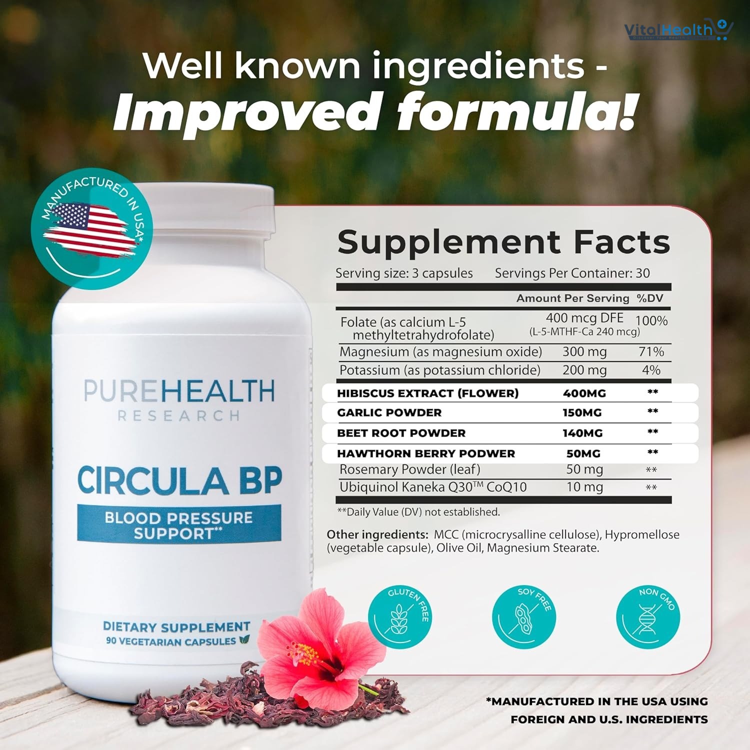 Formulated with clinically researched natural ingredients such as hawthorn extract, magnesium, garlic, hibiscus flower, and other heart-supportive nutrients to optimize cardiovascular health.