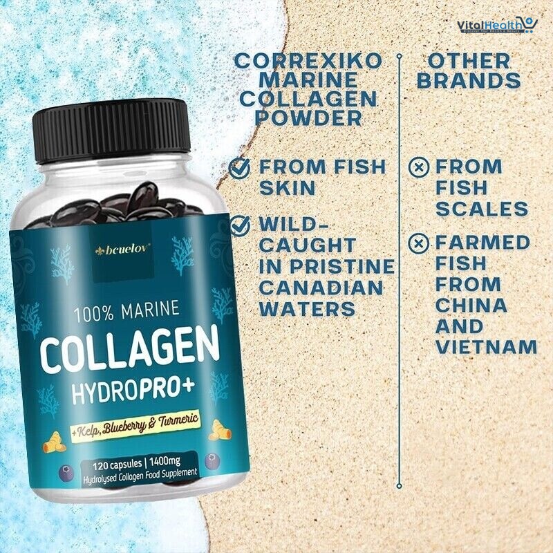 Bcuelov Marine Collagen Capsules are a great complement to your daily wellness regimen because of their special formula and outstanding health benefits. They provide an efficient all-natural means of boosting general vitality and immunity.