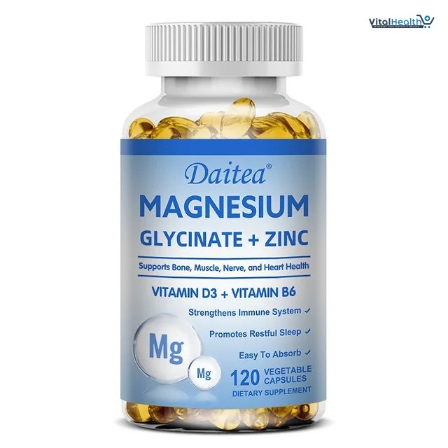 Daitea Magnesium Glycinate + Zinc Vitamin D3 and Vitamin B6 Capsules are a potent supplement. These capsules which combine vital vitamins and minerals offer a thorough method of improving general health. All ages can benefit from this blend which enhances cardiovascular health immunity and mobility.