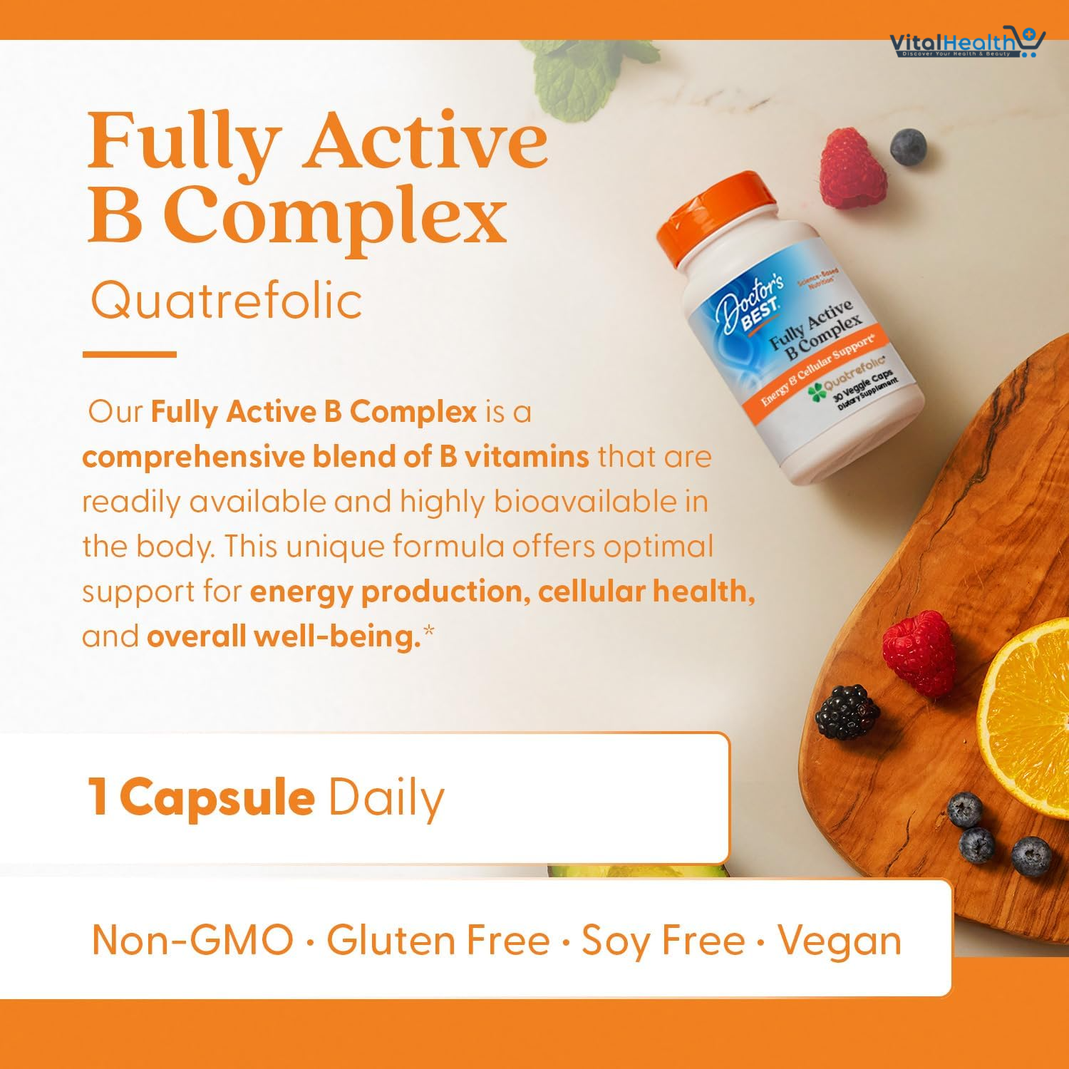 Substitutes naturally fully active folate for synthetic folic acid. Folic acid is an artificial folate that is difficult for the body to assimilate. This formulation instead provides the body's most fully active folate, MTHF (methyl-tetra-hydro-folate). Provides sufficient, fully active vitamin B12. Very few supplements provide sufficient amounts of active vitamin B12. This formulation provides 1000 micrograms of fully active B12 to help ensure excellent oral absorption. Thiamin ("vitamin B1") is fundamental to human metabolism because it is essential for the metabolism of oxygen.