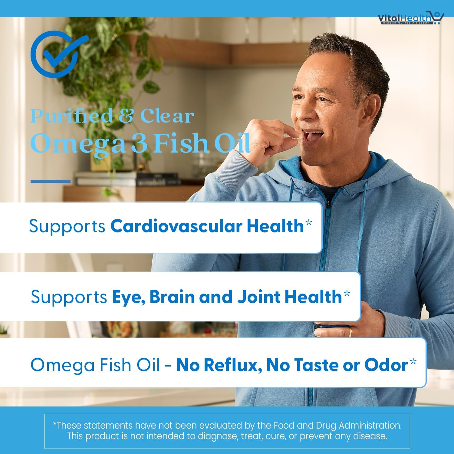 PURE & CLEAR FISH OIL WITH OMEGA 3 FATTY ACIDS fish oil supplements are filled with healthy fats and Omega-3s. Unique fish oil blend with the best ingredients, Pure & Clean Fish Oil provides terrific benefits to your overall health; including heart health, joint health, optimal brain function and eye health. BEST Source of the Omega-3 fatty acids, you want to take to support mental, joint and overall health. The sustainably-sourced clear omega-3 fish oil has full traceability of its high purity and quality, and contains a minimum of 800 mg EPA and 400 mg DHA per serving.