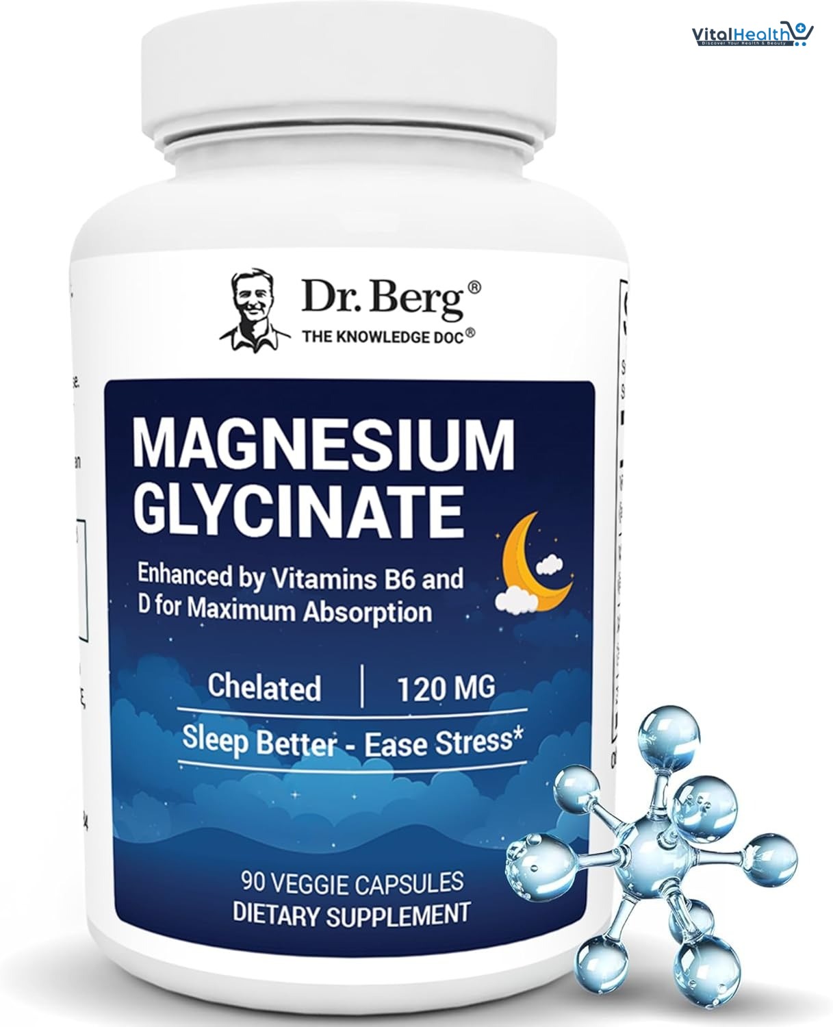 Dr. Berg Magnesium Glycinate is an exclusive combination of high-quality ingredients that provides a daily dose of essential nutrients. Each capsule delivers 120 mg of magnesium, 6.5 mg of vitamin B6, 100 IU of vitamin D3, and 10 mg of zinc.