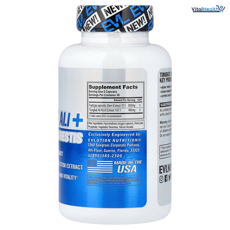 Take your workouts to the max with our Fadogia Agrestis and Tongkat Ali supplement and get more out of each workout with increased power and endurance muscle growth and performance Quality Ingredients This vegan and gluten free supplement contains 400mg of Tongkat Ali and 600mg of Fadogia Agrestis Stem Extract As a dietary supplement take 2 capsules daily preferably with a meal or as recommended by a physician Why EVL EVL is a leading name in full stack supplements because we take our quality seriously and only use the finest lab tested performance maximizing ingredients