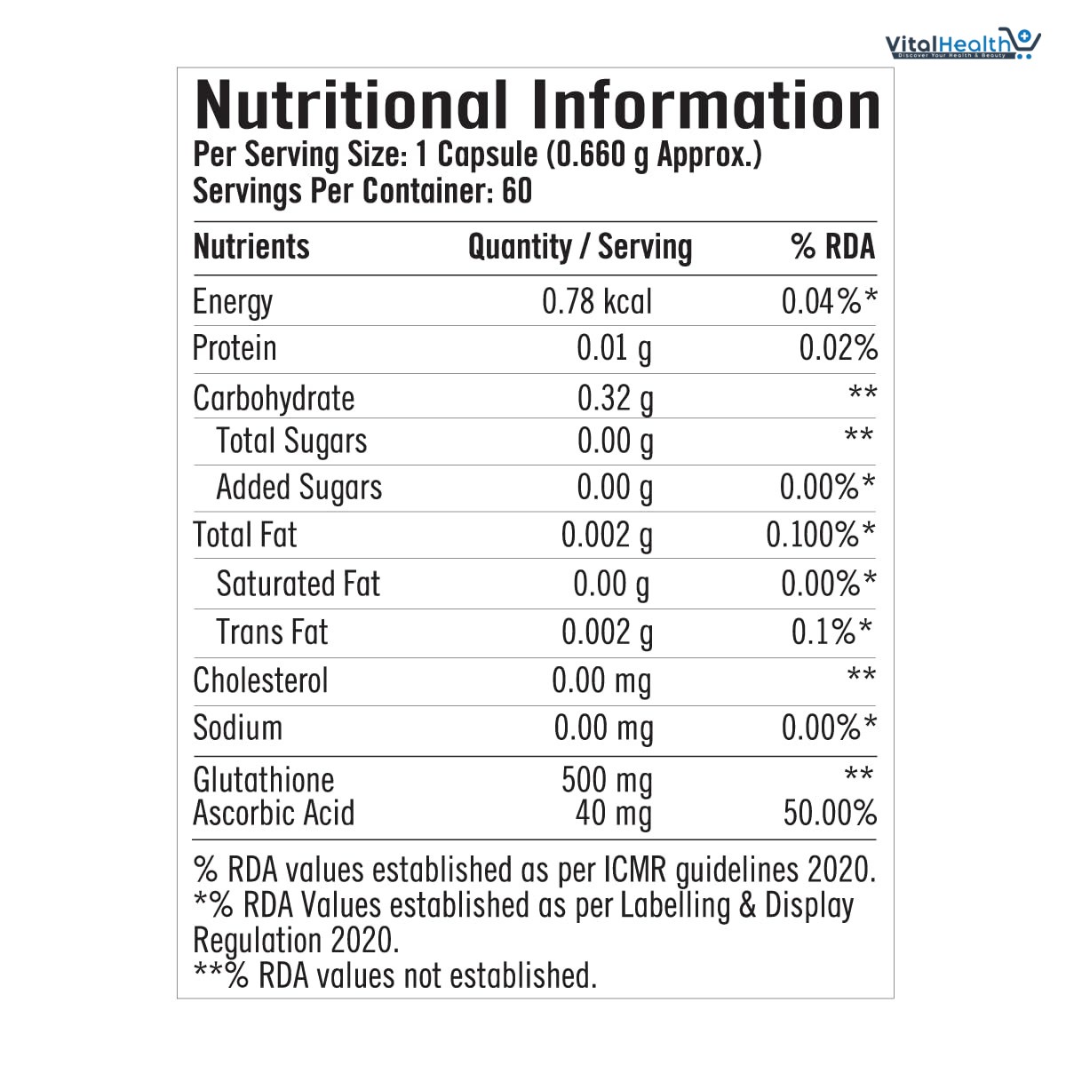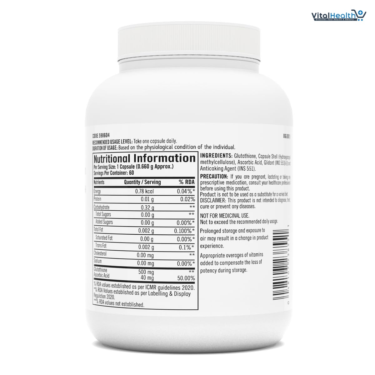 Glutathione – 500mg (Powerful antioxidant that supports skin brightening and detoxification)