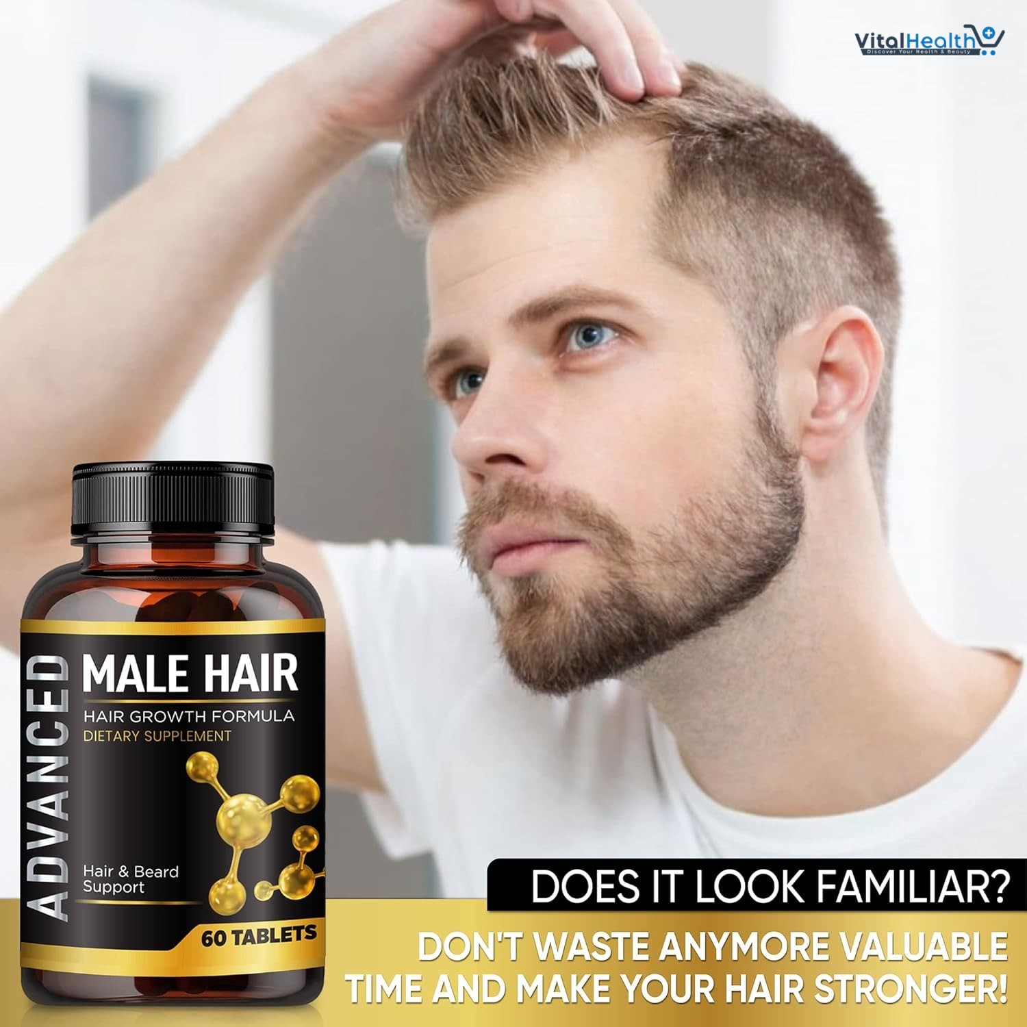 Male Hair supplement formulated especially for male hair. Especially for men experiencing thinning hair due to, stress, bad diet, aging, and unhealthy lifestyle. Get thicker hair in a couple of weeks. Our hair vitamins were formulated especially for men to support the two areas where men are losing hair the most: the hairline and the crown. Nutrapro hair supplement will get your confidence back in a matter of weeks.