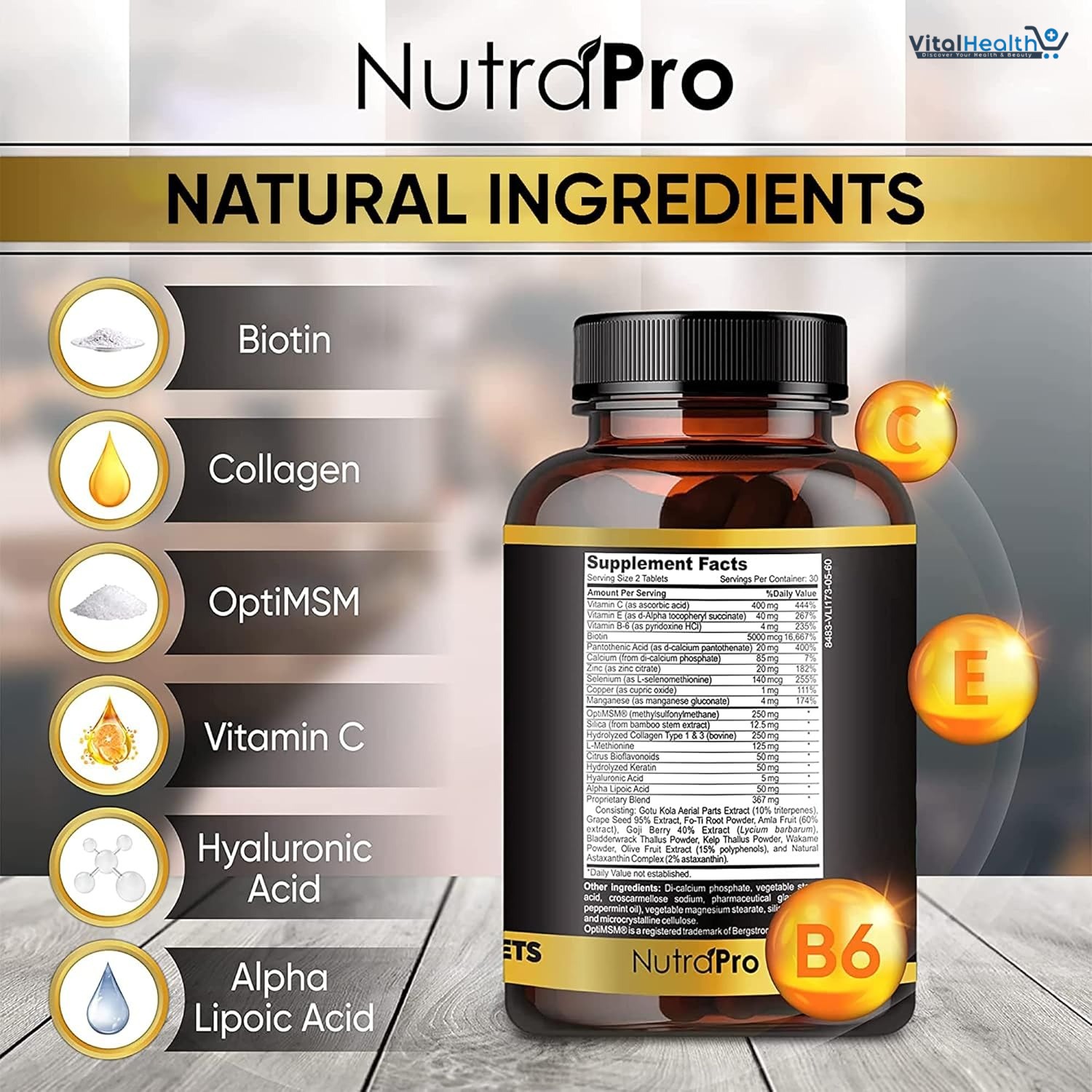 Helps slow and prevent hair thinning quickly and effectively with NutraPro's innovative hair biotin vitamin blend including keratin and collagen. | Keratin Hair Booster For Healthy Hair - Bolster brittle strands for a head full of strong, perfect hair you deserve.