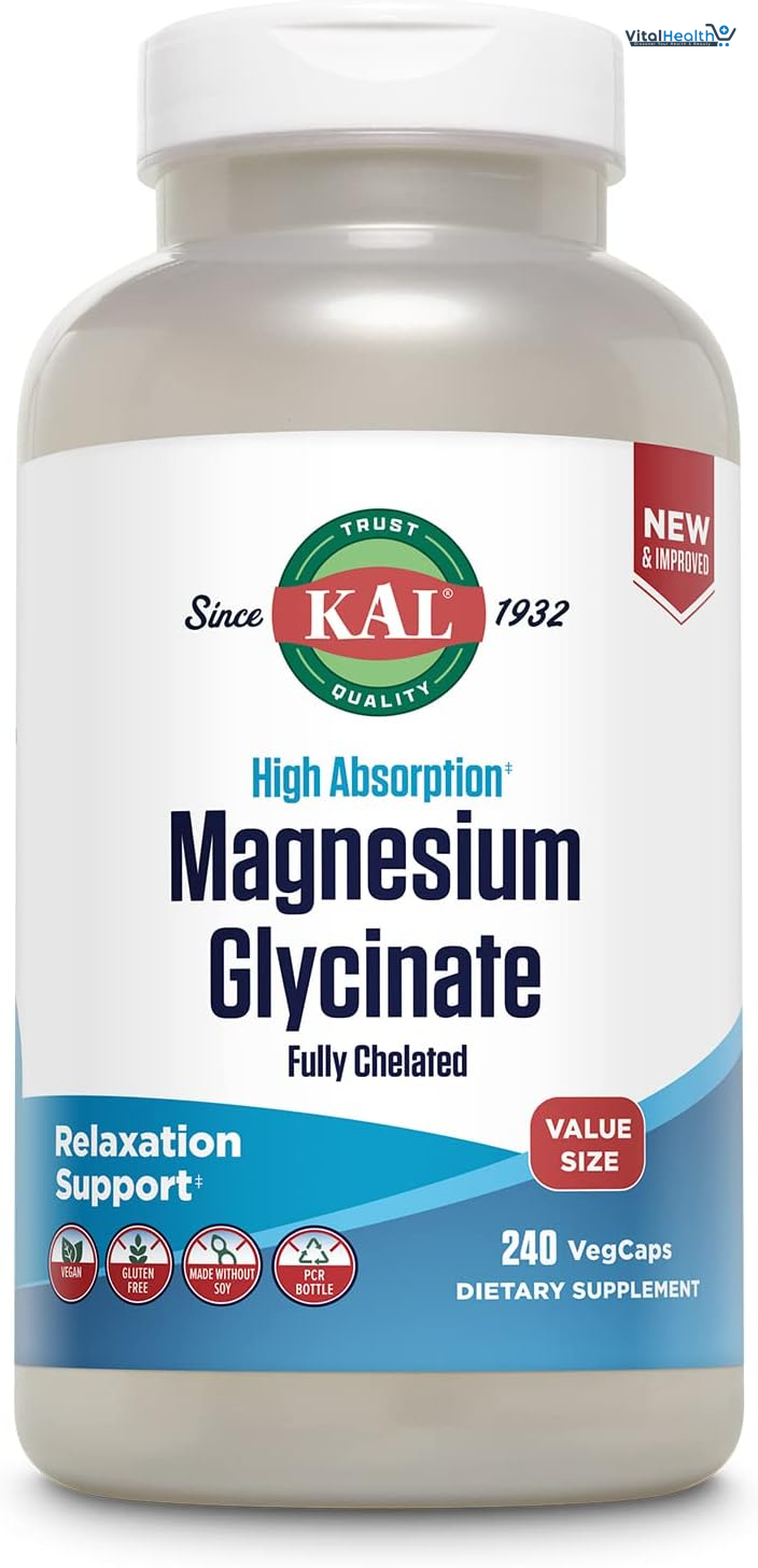 KAL Magnesium Glycinate 350 is a high-absorption magnesium supplement designed to support relaxation, bone health, and muscle function. Sourced from top-quality ingredients, this supplement is gentle on the stomach and suitable for vegan diets. Now available at Nahdi Pharmacies, ensuring quality and reliability.