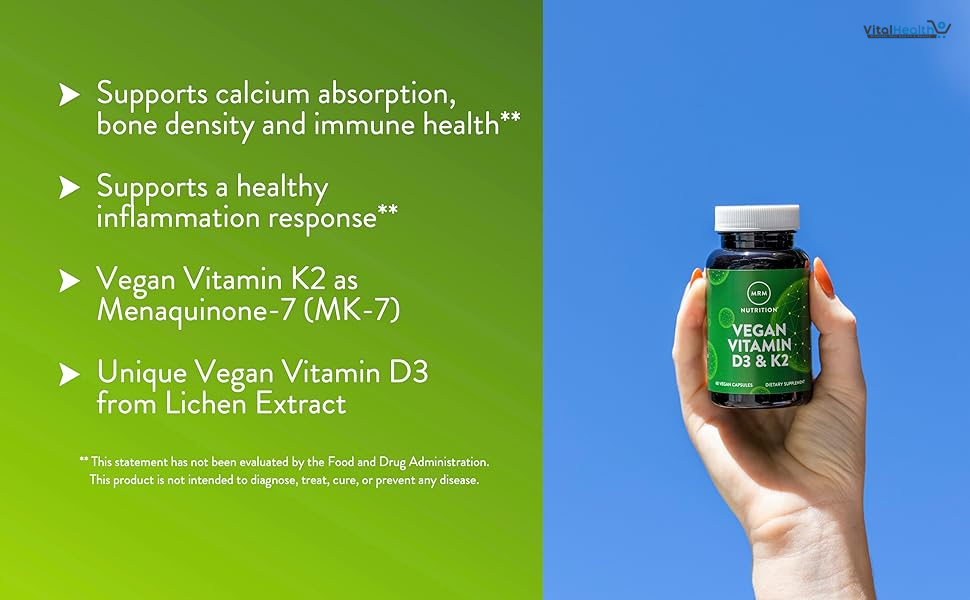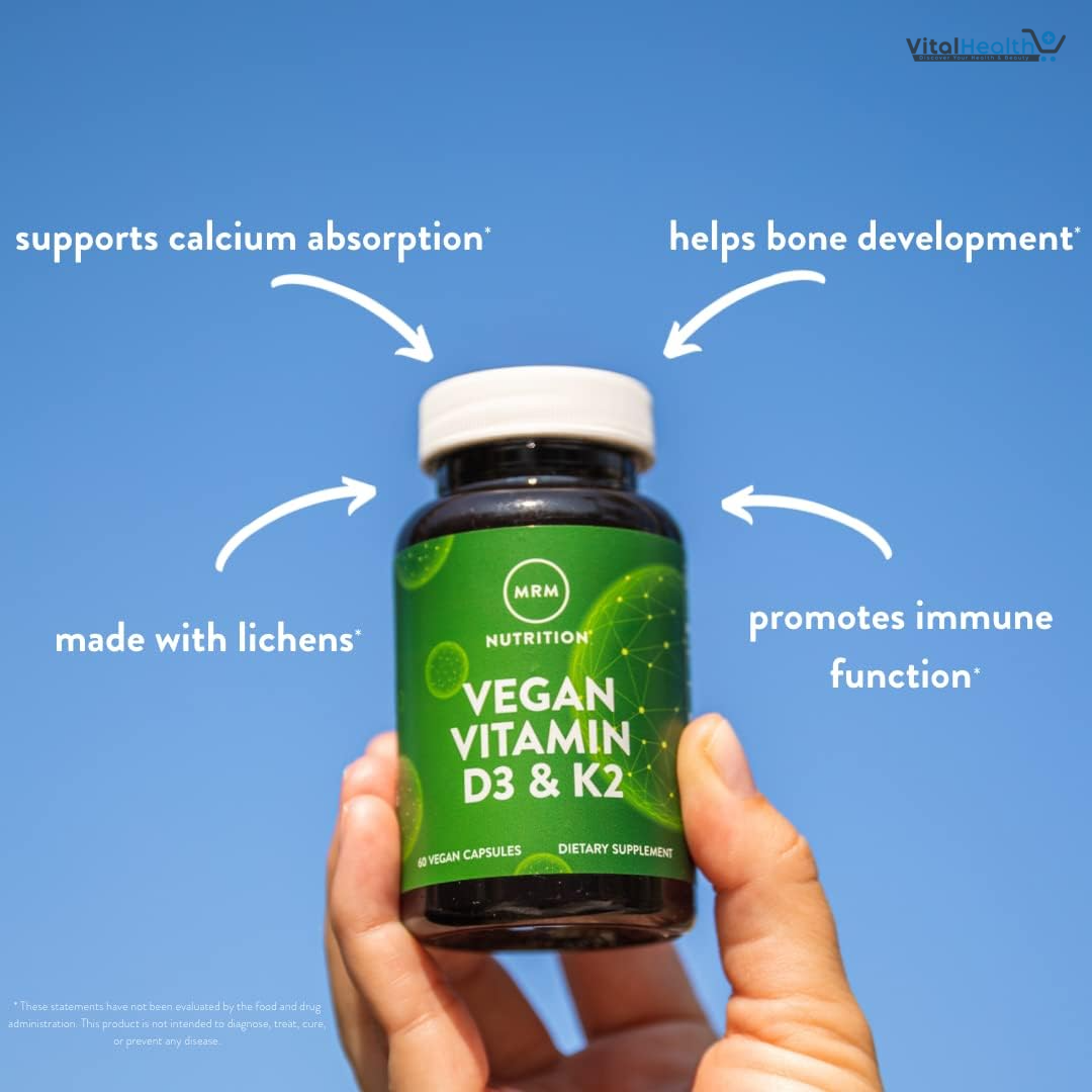 Low levels of vitamin K2 can cause weakened bones and increase calcification of arteries and other soft tissues. Vitamin K2 is the ideal companion nutrient to Vitamin D3 because Vitamin D helps extract calcium from the diet/supplements and K2 helps bind that calcium to the bone matrix to develop strong bones. MRM Vegan Vitamin D3 is a cholecalciferol form of Vitamin D3 that is extracted exclusively from lichens, an algae/fungi commensal organism, to meet calcium and bone health needs of both vegans and vegetarians.