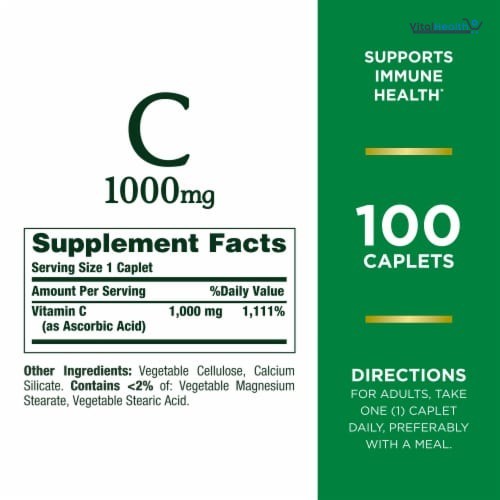 Adults should take one Vitamin C immune support caplet daily, preferably with a meal
