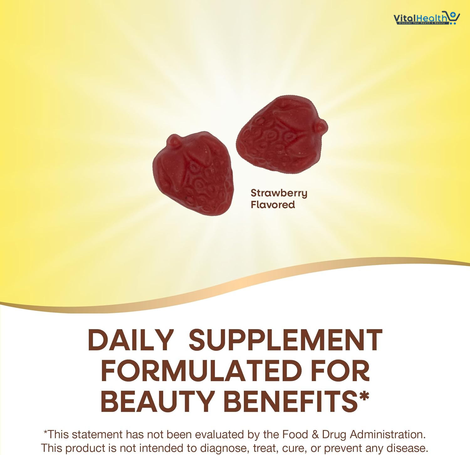 Add these yummy strawberry flavored gummies to your beauty routine for lustrous hair, healthy skin, and strong nails.* Nature's Way Hair, Skin & Nails Gummies are made with 100 mg of hydrolyzed collagen and 2,500 mcg biotin per 2-gummy serving, along with antioxidant vitamins C and E.