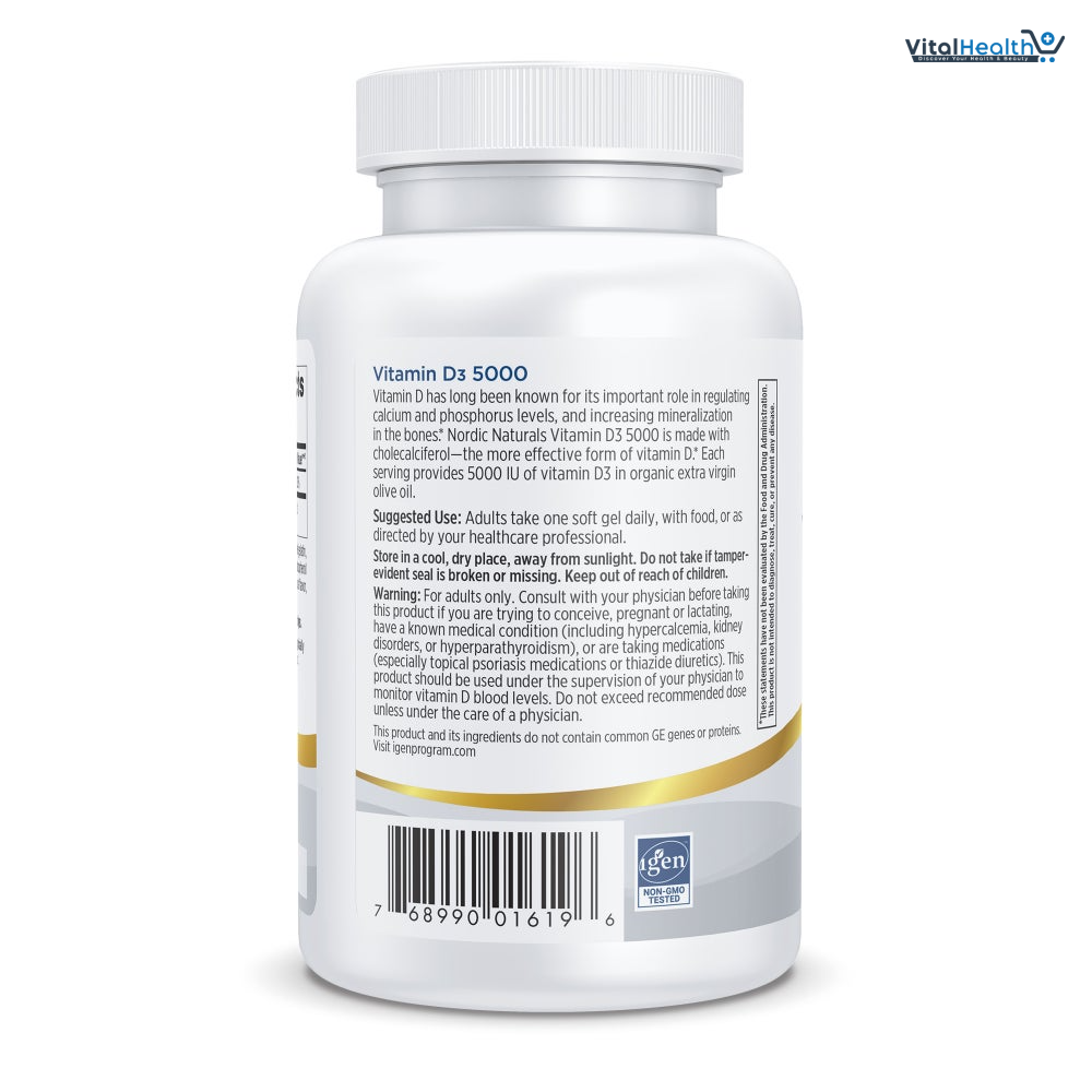 - Each easy-to-swallow, mini Vitamin D3 soft gel provides 5000 IU (125 mcg) of cholecalciferol, the natural, most easily absorbed and utilized form of vitamin D.