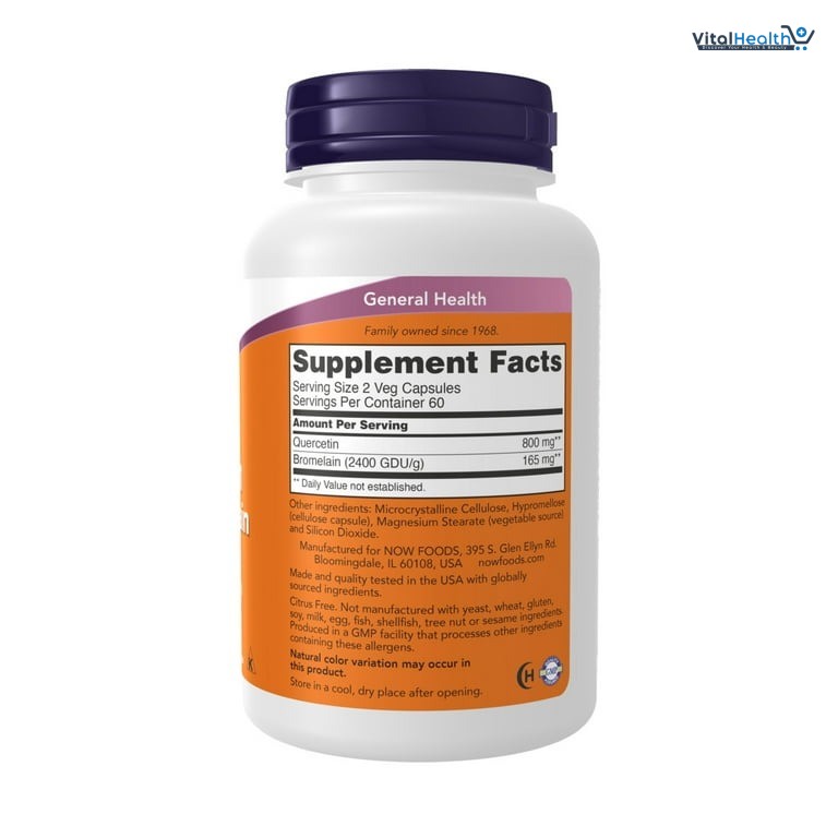 For adults only. Do not use this product if you have a pineapple allergy. Quercetin may interact with a variety of medications; consult before physician using this product if taking prescription drugs. Consult physician if pregnant/nursing, or have a medical condition (especially kidney dysfunction). Keep out of the reach of children. Natural color variation may occur in this product. Made and quality tested in the USA with globally sourced ingredients. Store in a cool, dry place after opening. Family owned since 1968.