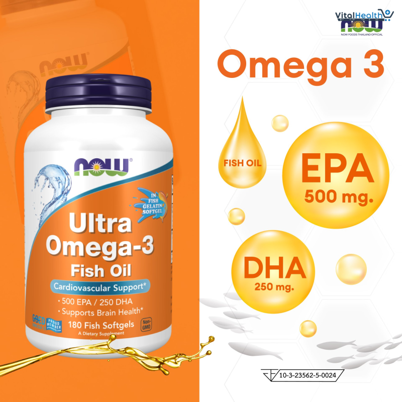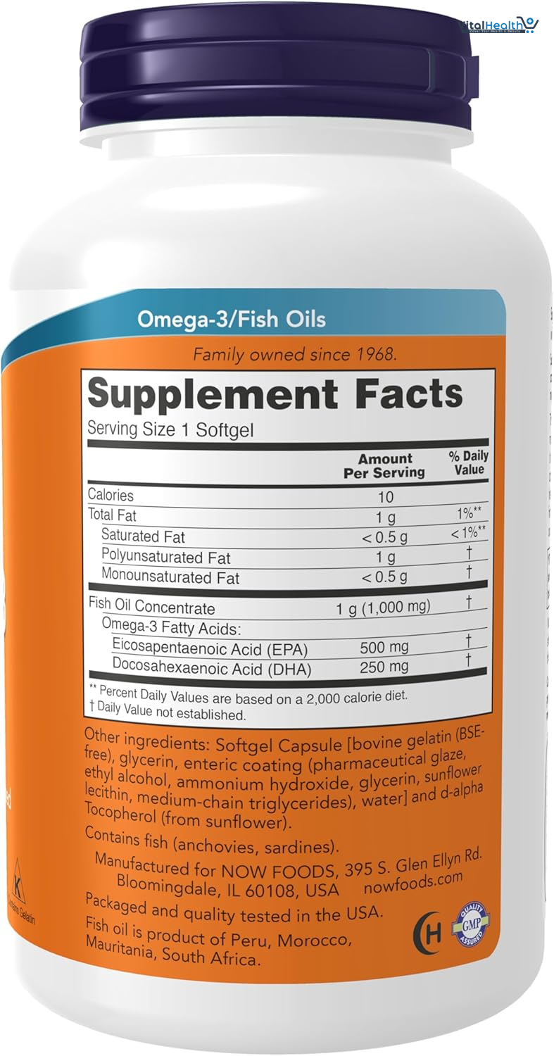 Main Ingredients: Fish Oil Concentrate 1 g (1,000 mg), Omega-3 Fatty Acids: 0Eicosapentaenoic Acid (EPA) 500 mg , Docosahexaenoic Acid (DHA) 250 mg.
