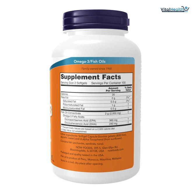 Take 2 NOW® Omega-3 1,000 mg softgels a day to help support heart health