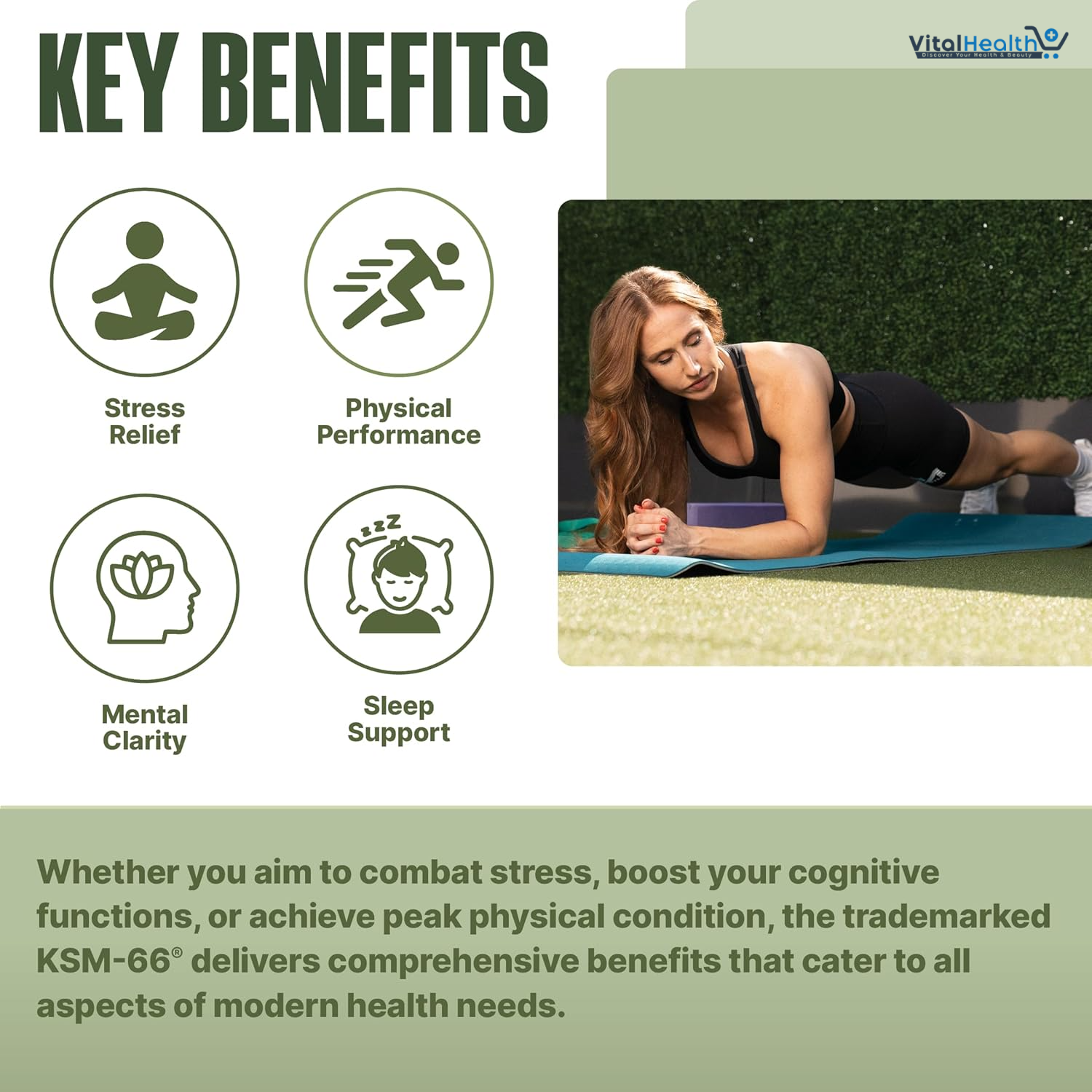 Recognized for its unparalleled purity and potency, KSM-66® sets the standard in the market, ensuring you receive the most effective ashwagandha supplement available. Ideal for those seeking to manage stress, enhance mental clarity, and improve physical performance, Ashwagandha KSM-66® is your go-to for natural, holistic well-being. Ashwagandha KSM-66 offers a holistic approach to wellness, targeting the root causes of stress and imbalance in the body. By incorporating this powerful adaptogen into your daily routine, you can unlock a more vibrant, resilient, and balanced version of yourself.