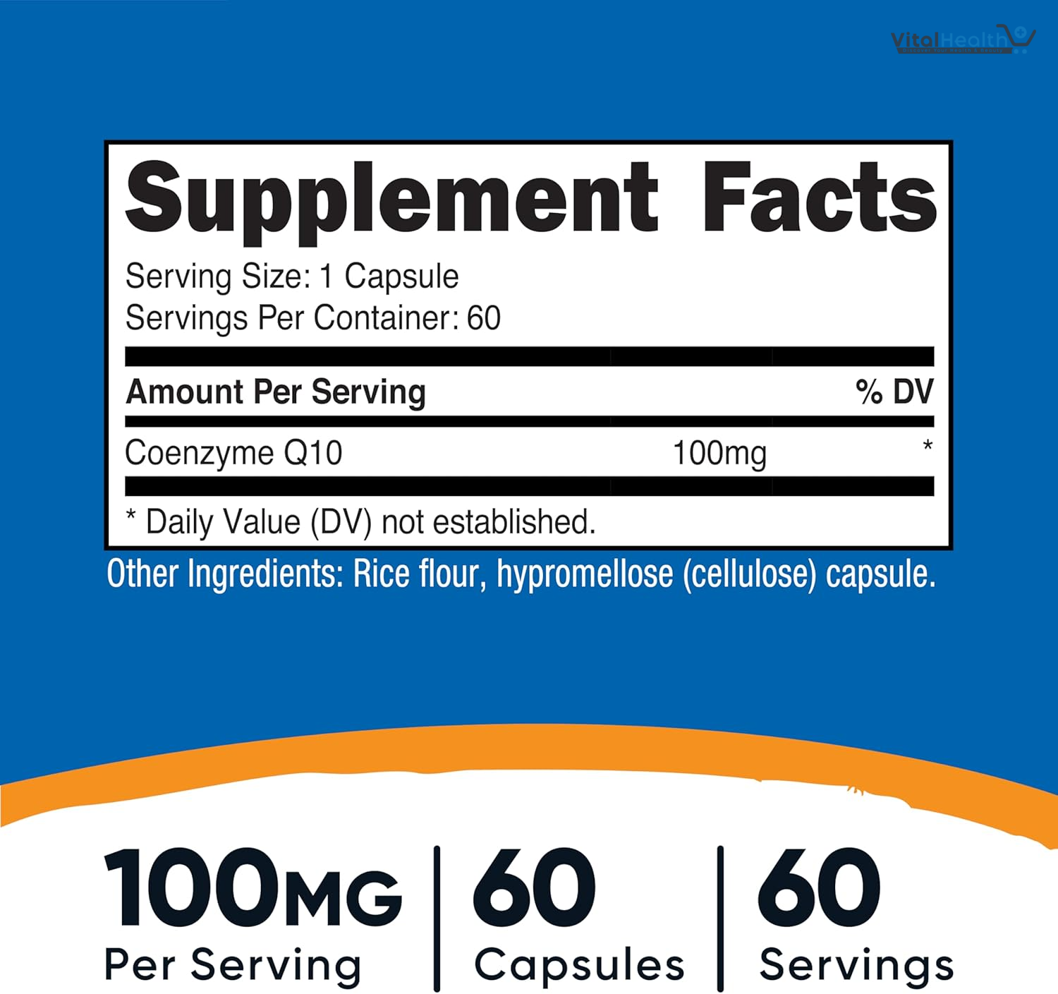- Each Capsule contains 100mg of Coenzyme Q10