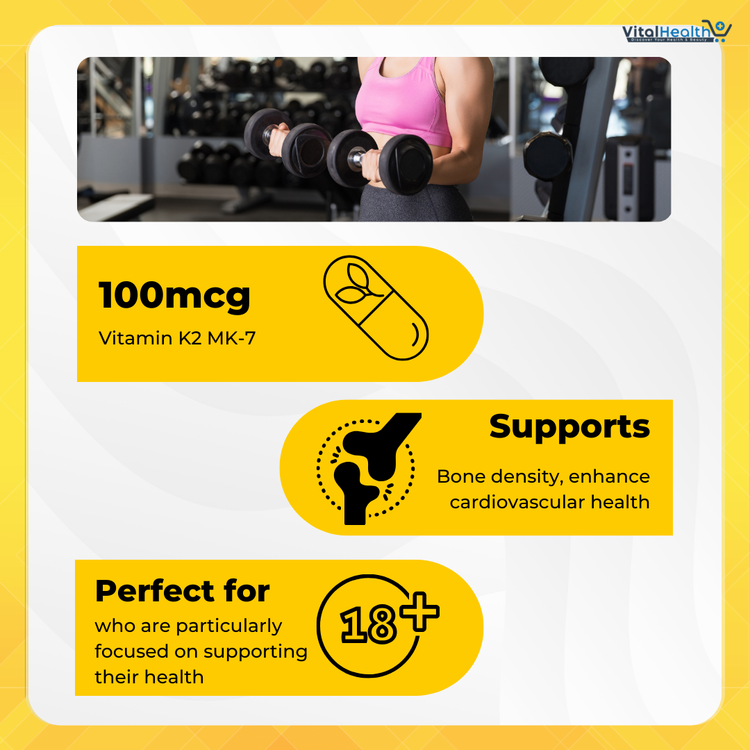 Vitamin K2 helps to activate certain proteins that play a part in the regulation of calcium. This version of K2 is from MK7 (menaquinone-7). Nutricost Vitamin K2 Mk-7 is Expertly Formulated to Support Bone and Tissue Health. Our High-quality Vitamin K2, Derived From Fermented Chickpeas, Helps Optimize Calcium Metabolism, Promoting Strong Bones and Flexible Tissues. With Its Bioavailable Form, Vitamin K2 Ensures Maximum Absorption and Distribution Throughout the Body.