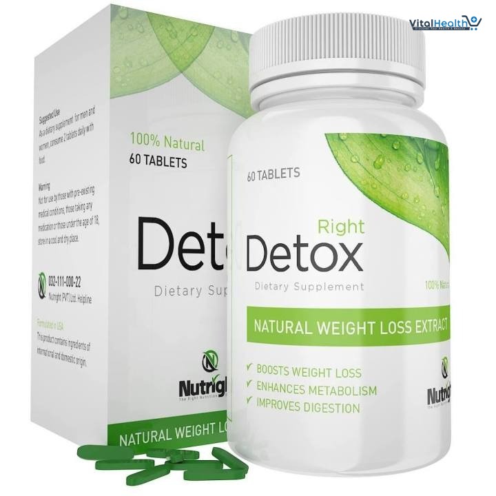 Nutright Right Detox is a premium herbal formula designed to support natural body cleansing and healthy weight management. With a blend of natural ingredients, these tablets help flush out toxins, improve digestion, and support metabolism — making them a popular choice for those looking to kickstart a wellness journey.