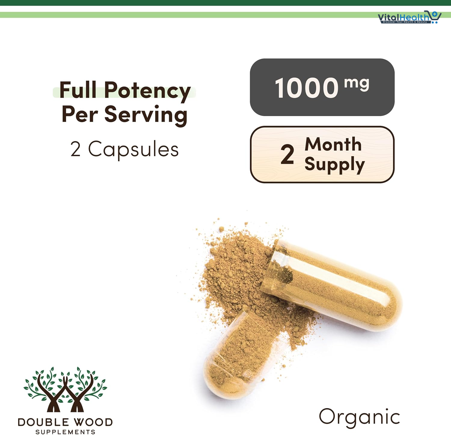 - TWO MONTH SUPPLY: Double Wood provides enough Lion’s Mane Mushroom supplement to last two months