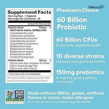 For both adult men and women the Physicians Choice Probiotic Gut Health Supplement is a high-quality formulation that supports gut health enhances nutrient digestion boosts metabolism and encourages fat burning. To guarantee ideal digestive and metabolic function this supplement contains a combination of probiotics prebiotics and vital enzymes.