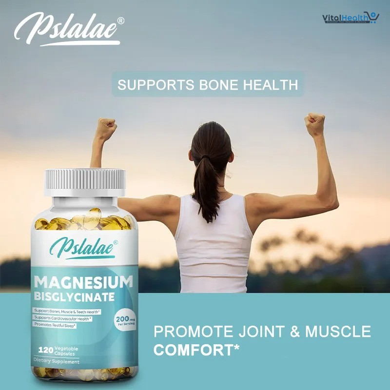 Pslalae Magnesium Bisglycinate provides 200 mg of elemental magnesium in a highly bioavailable, chelated form, promoting muscle relaxation, better sleep, heart health, and energy metabolism without causing gastrointestinal discomfort. Magnesium bisglycinate can also be used to treat abnormally low blood magnesium levels. Due to its mild laxative effect, it is also used to relieve constipation. Magnesium helps cells, nerves, muscles, bones, and the heart function properly.