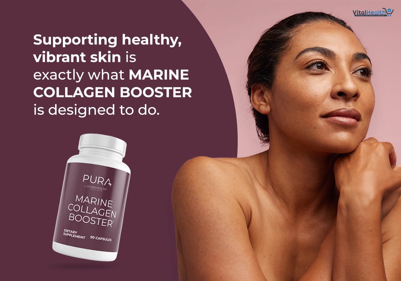 PURA Marine Collagen Booster is designed to support skin elasticity, reduce fine lines, strengthen hair, and promote joint health. Made with premium-grade marine collagen peptides, it helps replenish the body’s natural collagen levels, which decline with age. Regular use can lead to firmer, hydrated skin, healthier hair, and improved mobility.