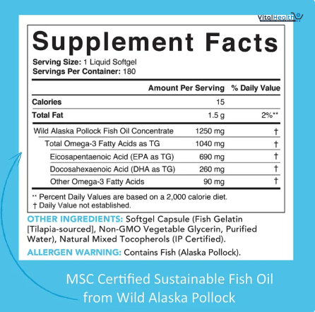 Fish Oil (from Anchovies, Mackerel, Sardines), Gelatin, Glycerin, Purified Water, Natural Lemon Flavor.