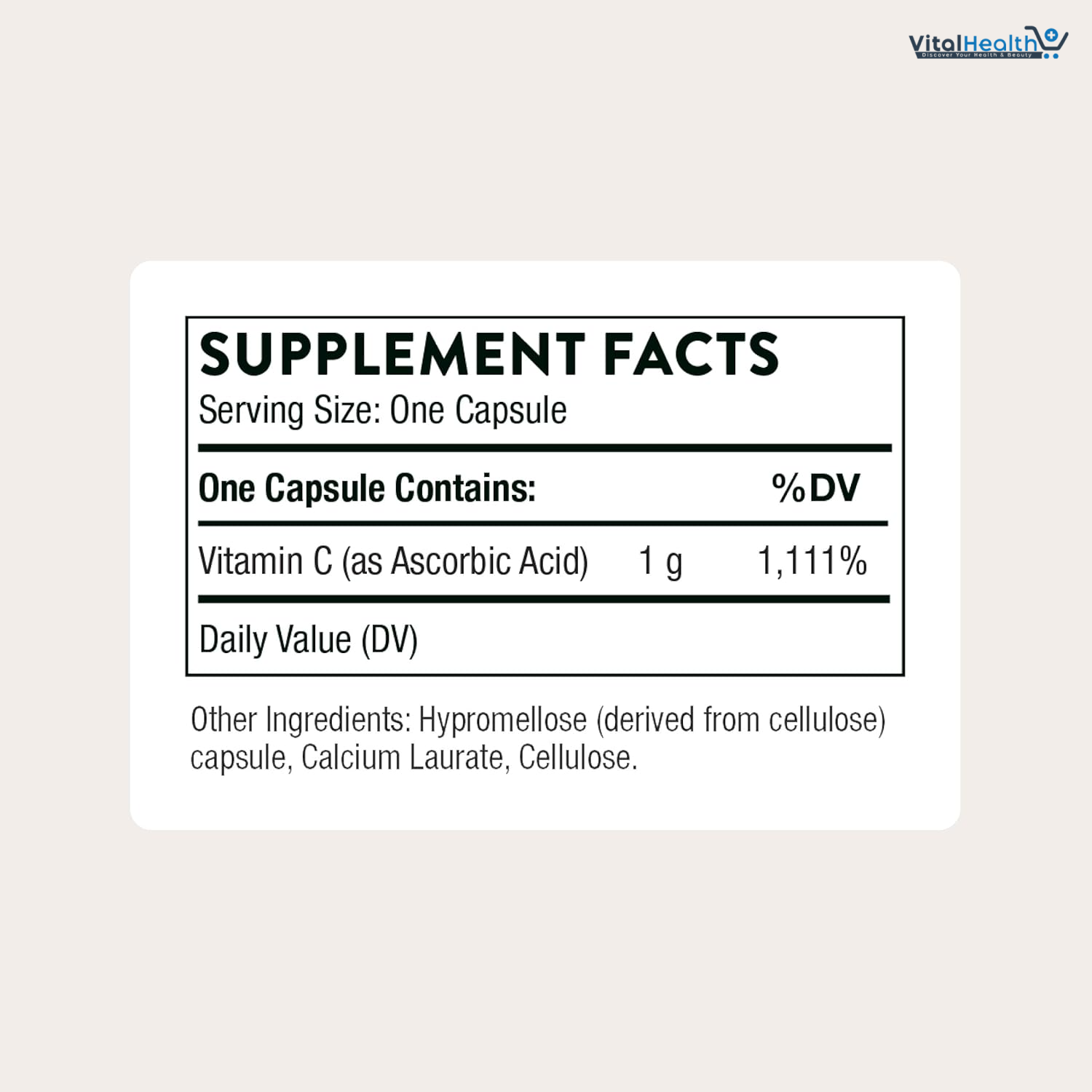 One Capsule Contains: Vitamin C (as Ascorbic Acid) 1 g.