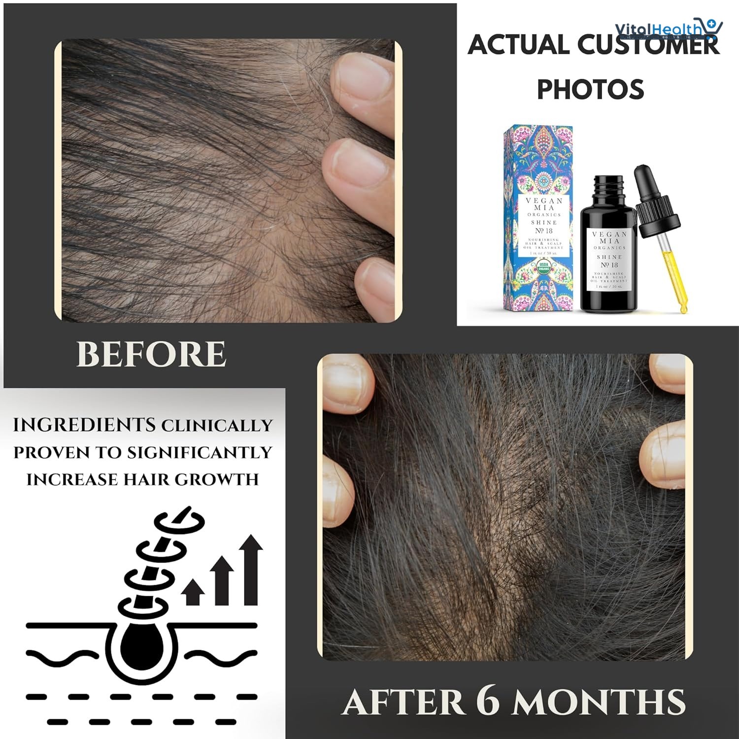 Stimulates hair follicles for hair growth and thickness