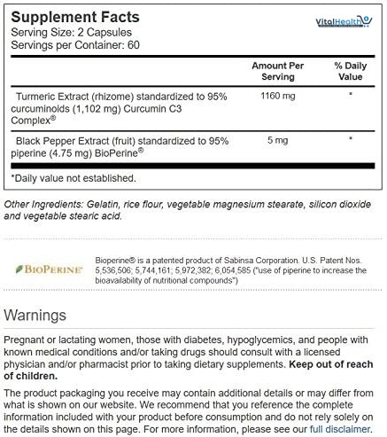 Vitacost’s formulation combines science-backed Curcumin C3 Complex with BioPerine for enhanced absorption. This pairing is widely used in supplements for joint health, antioxidant defense, and overall vitality.