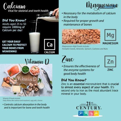 21st Century Calcium, Magnesium, Zinc & Vitamin D formula contains a unique blend of ingredients that help to increase the absorption of nutrients, ensuring that your body gets the most out of every dose.