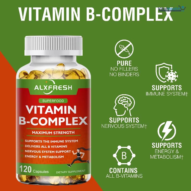 Alxfresh B-Complex vitamin supplements are made to offer a potent combination of vital B vitamins that promote energy production metabolic processes and general health. People who want to maintain a balanced nervous system increase their vitality and enhance their cognitive function are especially fond of this supplement. The Alxfresh B-Complex is designed to help improve a number of body processes that are essential for preserving health and to address the widespread B vitamin deficiency in many peoples diets.