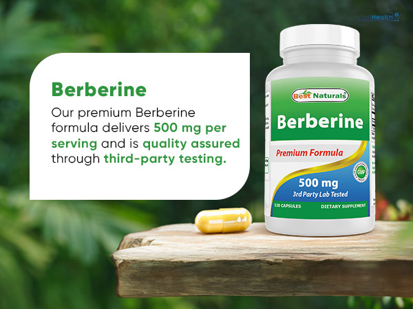 Best Naturals Berberine 500mg supports daily wellness with a potent 5:1 authentic root extract from Berberis aristata and delivers nutritional support. This vegan supplement offers herbal wellness and adaptogenic support with botanical properties, making it ideal for those living a plant-based lifestyle. Each serving of these vegetarian capsules provides rich antioxidant, alkaloid, and adaptogenic properties for daily health needs. This natural supplement may help with weight loss, lower blood sugar and protect your heart.