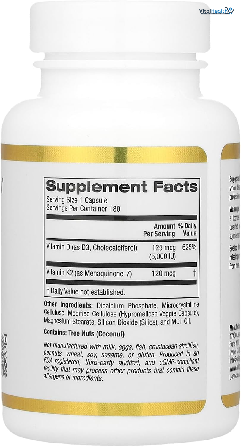 Main Ingredients: Vitamin D (as D3, Cholecalciferol), Vitamin K2 (as Menaquinone-7)