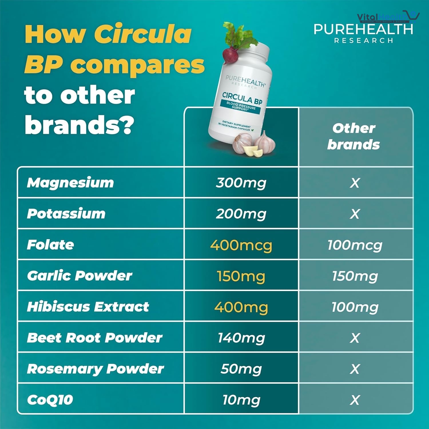Circula BP by PureHealth Research is a premium heart wellness formula made with natural, clinically researched ingredients to support healthy blood pressure, improve circulation, and promote cardiovascular strength. Designed to aid both diastolic and systolic balance, it helps maintain optimal heart function at the cellular level while supporting arterial flexibility and overall well-being.