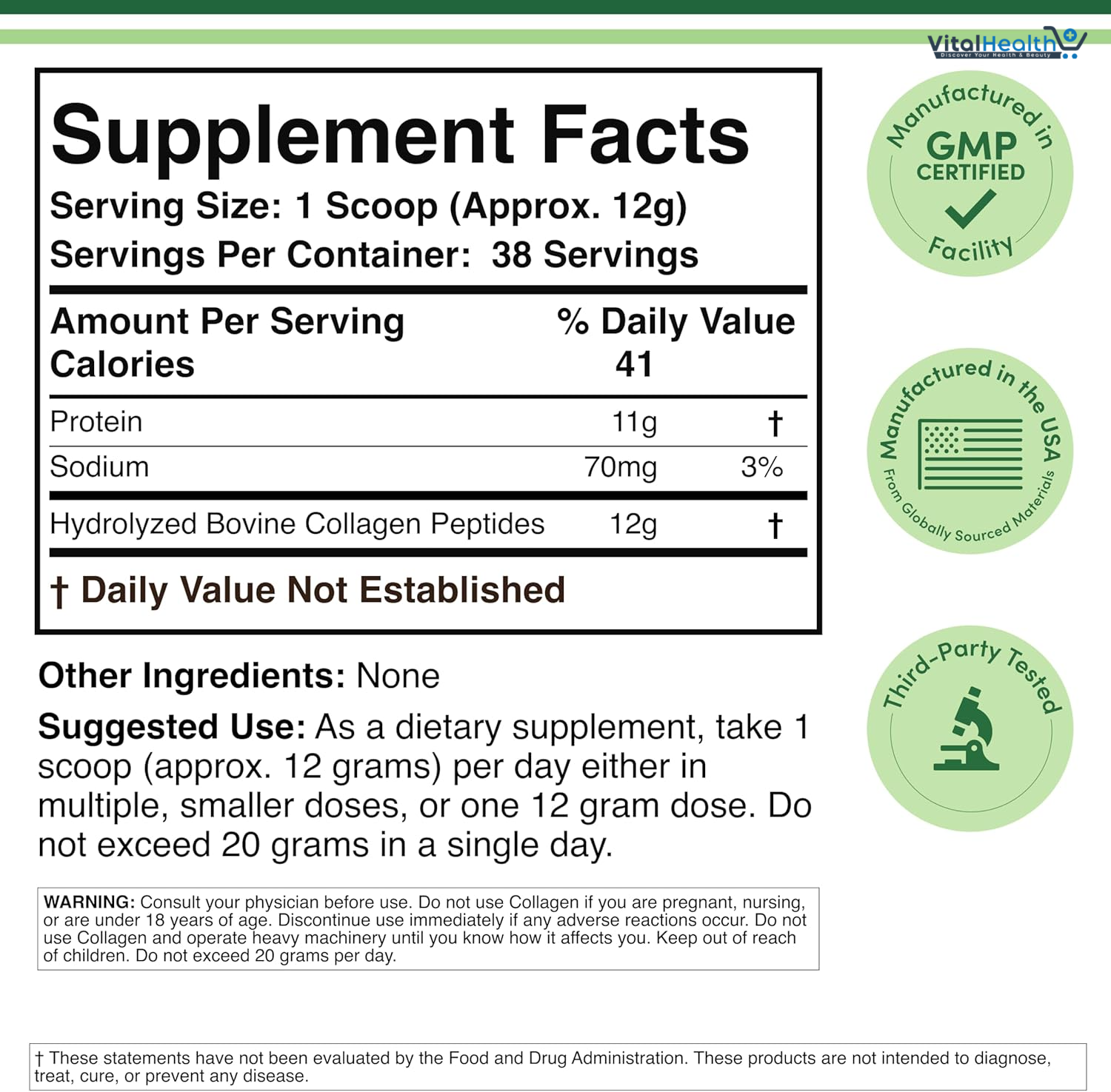 Hydrolyzed Bovine Collagen Peptides 12g