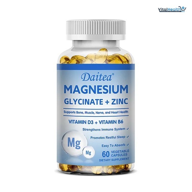 Daitea Magnesium Glycinate + Zinc Vitamin D3 and Vitamin B6 Capsules are a potent supplement. These capsules which combine vital vitamins and minerals offer a thorough method of improving general health. All ages can benefit from this blend which enhances cardiovascular health immunity and mobility.