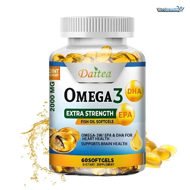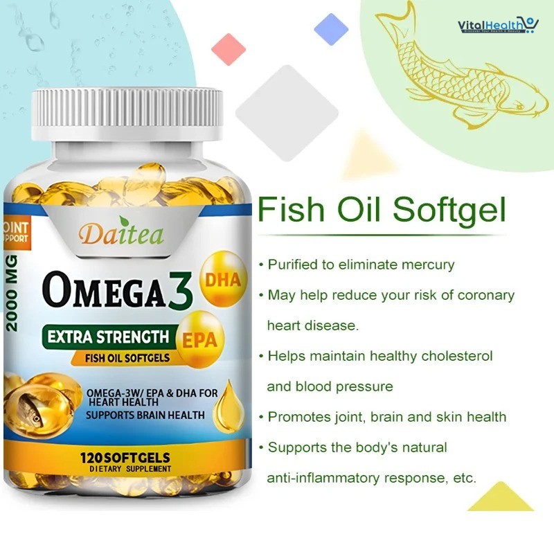Use the Daitea Omega-3 Fish Oil Capsules to improve your general health and wellbeing. These supplements are essential to your daily regimen regardless of your goals—heart health brain function or radiant skin.