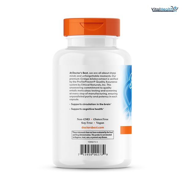 At Doctor's Best, we are all about sharp minds and unforgettable moments. Our premium Ginkgo biloba extract is verified by the ProfileProven® Quality Assurance system by Ethical Naturals, Inc. This unwavering commitment to quality entails meticulous testing and screening at every step of manufacturing, ensuring unparalleled purity and potency in each capsule.
