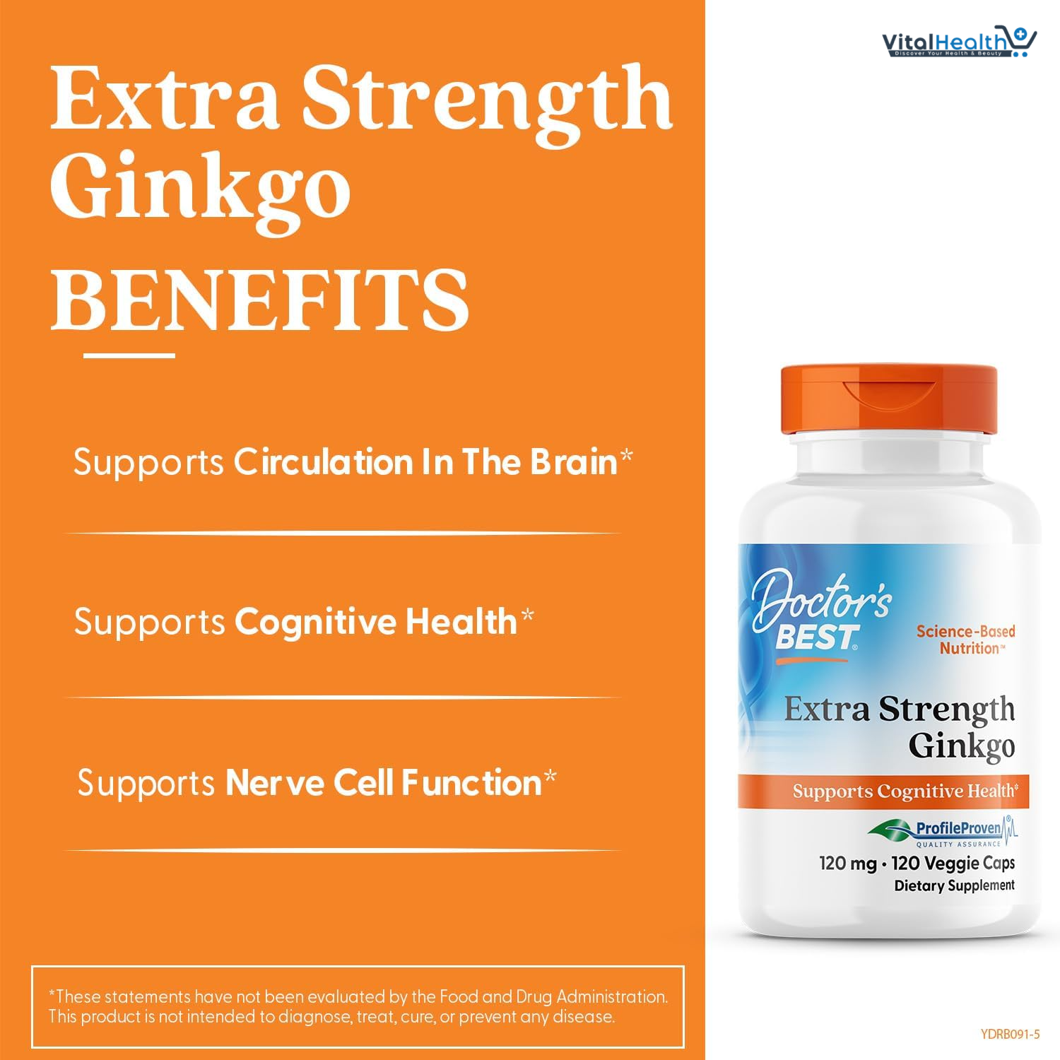 DOCTOR’S BEST EXTRA STRENGTH GINKGO supports memory and brain capacity. It also helps support healthy mitochondrial and nerve cell function.