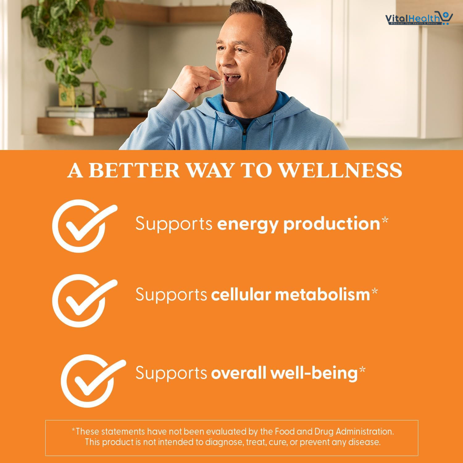 Substitutes naturally fully active folate for synthetic folic acid. Folic acid is an artificial folate that is difficult for the body to assimilate. This formulation instead provides the body's most fully active folate, MTHF (methyl-tetra-hydro-folate). Provides sufficient, fully active vitamin B12. Very few supplements provide sufficient amounts of active vitamin B12. This formulation provides 1000 micrograms of fully active B12 to help ensure excellent oral absorption. Thiamin ("vitamin B1") is fundamental to human metabolism because it is essential for the metabolism of oxygen.