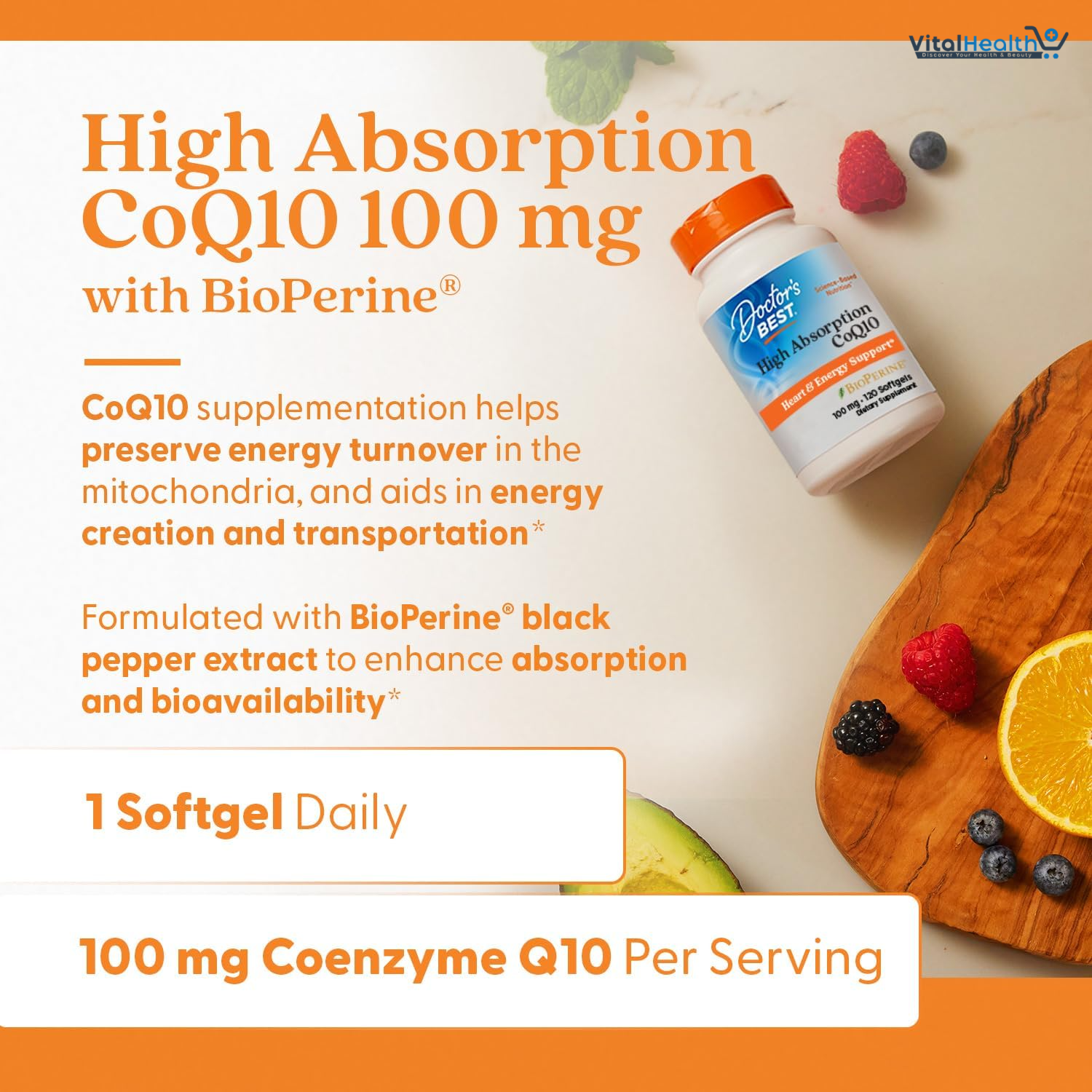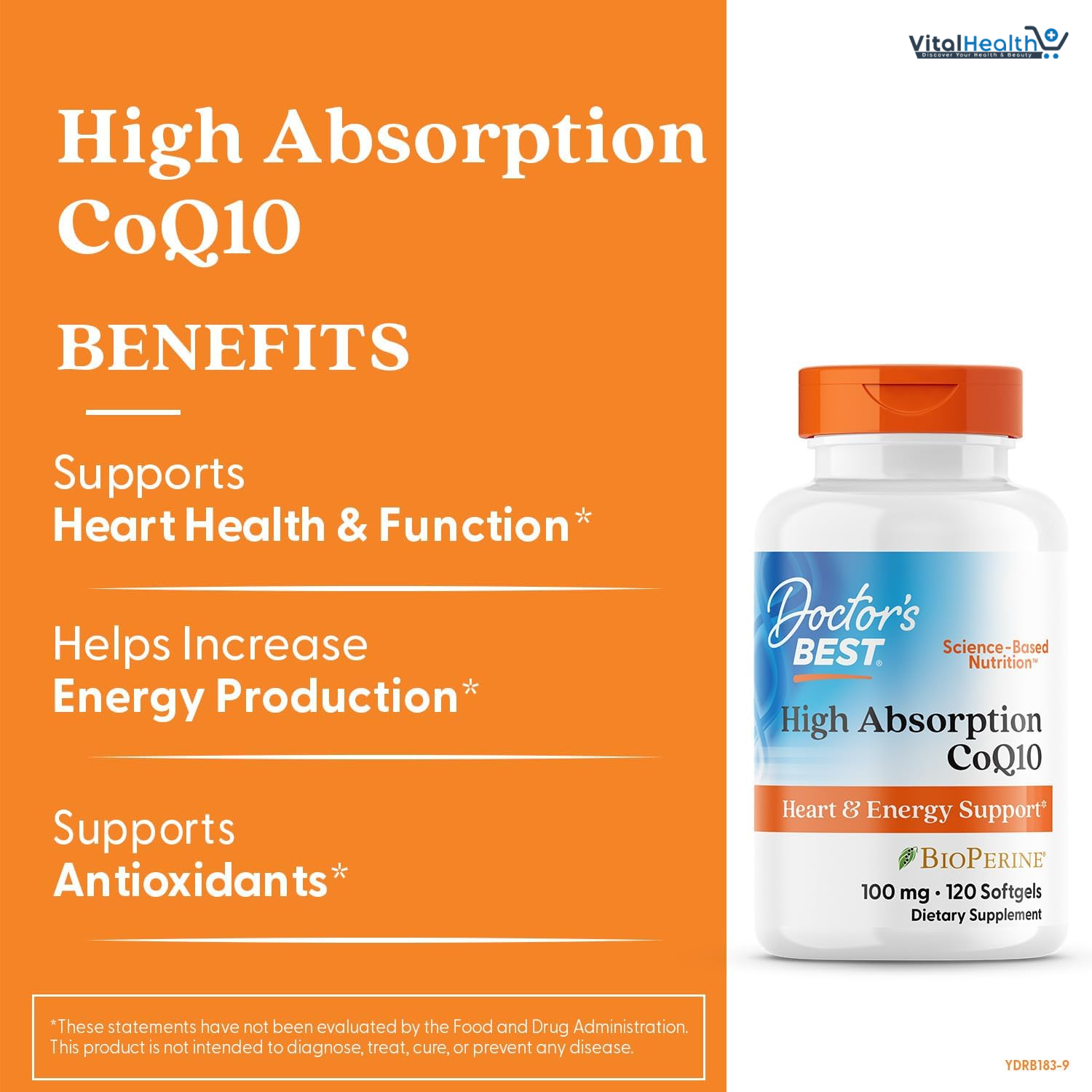 It Helps restore CoQ10 that may be depleted by aging and statin drugs. It is Formulated with BioPerine® black pepper extract to enhance absorption and bioavailability. CoQ10 is not intended to serve as a replacement for statin therapy, nor should you discontinue taking any prescribed medications while supplementing with CoQ10. Doctor's Best High Absorption CoQ10 is a Science-based Supplement Formulated to Support Heart Health, Cellular Energy, and Overall Vitality.
