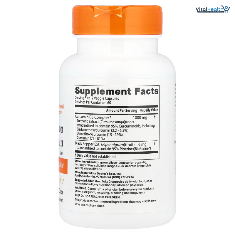 Doctor's Best High Absorption Curcumin From Turmeric Root with C3 Complex & BioPerine supports the joints, brain, heart, and the circulatory system. Curcumin C3 complex. This is a Curcuma longa rhizome-standardized to contain 95% total curcuminoids, an antioxidant that supports healthy joints and improves joint comfort.