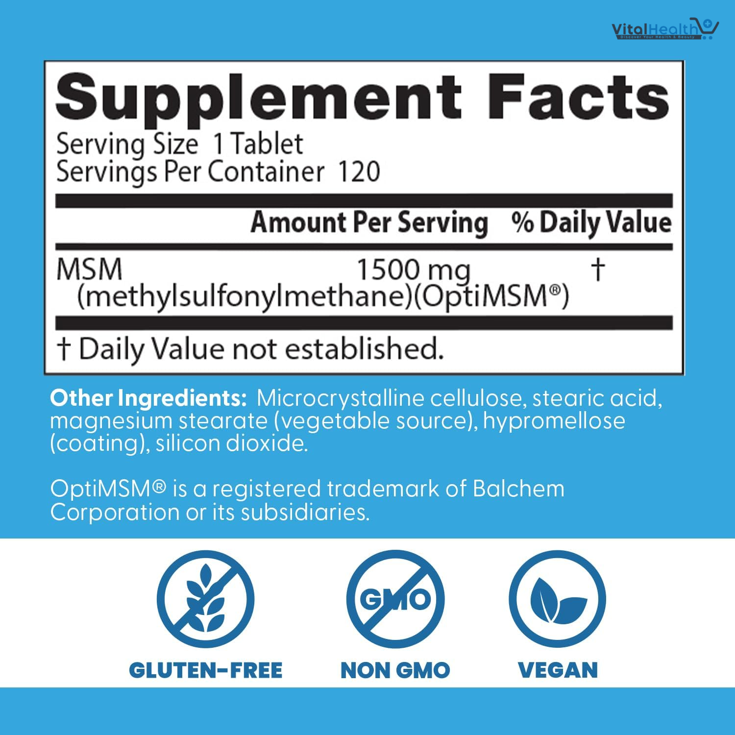 MSM (methylsulfonylmethane)(OptiMSM) 1500 mg