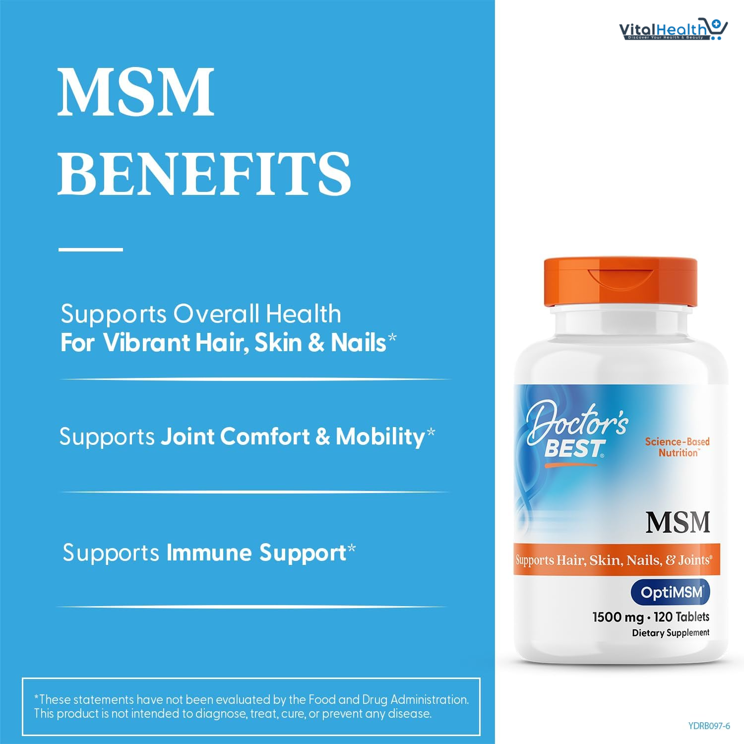 At Doctor's Best, we value nature's beauty mineral. Our MSM formula with OptiMSM delivers beneficial sulfur, supporting the formation of healthy connective tissues to enhance joint function. Additionally, this sulfur-containing nutrient is known to play a supportive role in maintaining the skin's structural framework and promoting the health of hair and nails.