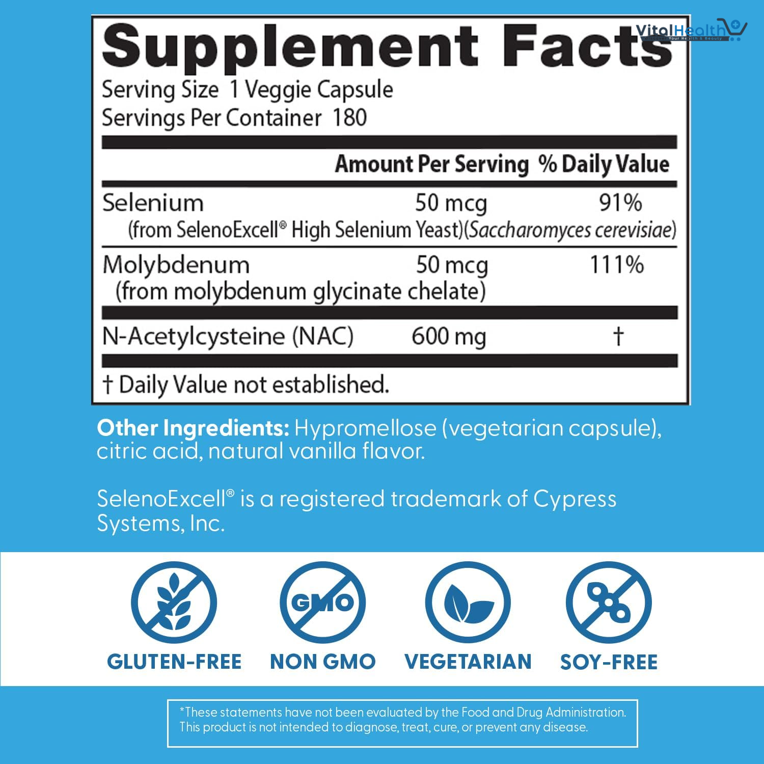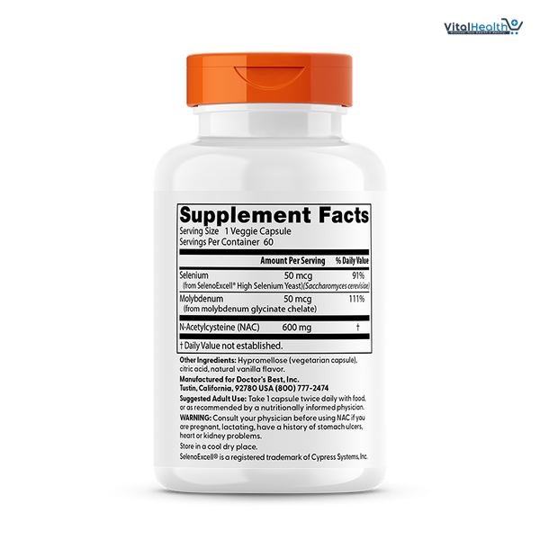Doctor's Best NAC Detox Regulators support the production and utilization of glutathione, the foremost protective and regulatory antioxidant naturally concentrated in all healthy cells. NAC (N-Acetylcysteine) is proven to support glutathione production, while selenium and molybdenum are essential for facilitating glutathione's role in supporting energy production, detoxification and other fundamental life processes.