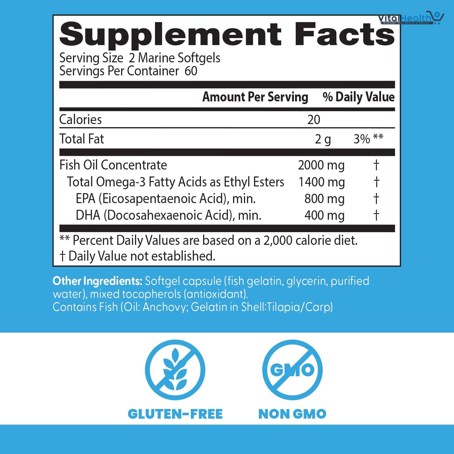 Other Ingredients: Softgel capsule (fish gelatin, glycerin, purified water), mixed tocopherols (antioxidant).