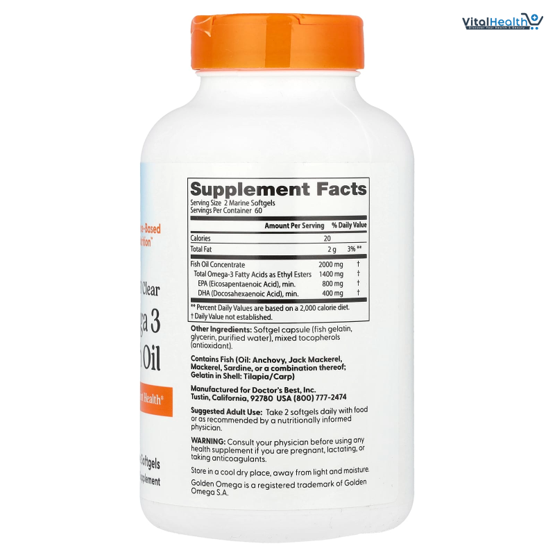 PURE & CLEAR FISH OIL WITH OMEGA 3 FATTY ACIDS fish oil supplements are filled with healthy fats and Omega-3s. Unique fish oil blend with the best ingredients, Pure & Clean Fish Oil provides terrific benefits to your overall health; including heart health, joint health, optimal brain function and eye health. BEST Source of the Omega-3 fatty acids, you want to take to support mental, joint and overall health. The sustainably-sourced clear omega-3 fish oil has full traceability of its high purity and quality, and contains a minimum of 800 mg EPA and 400 mg DHA per serving.